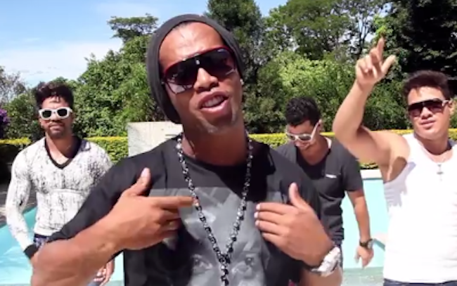 En effet, fêtard connu et reconnu, Ronaldinho a la musique dans le sang ainsi que souvent de l’alcool. Dernier dérapage en date du footballeur: Il s’est fait remarquer la semaine dernière en écopant d’une amende pour un retard dû à des « excès personnels » durant le Carnaval. Cette semaine, il apparaît dans le clip de la chanson « Joga o copo pro alto », traduit littéralement par « lève ton verre » du brésilien Dennis DJ.